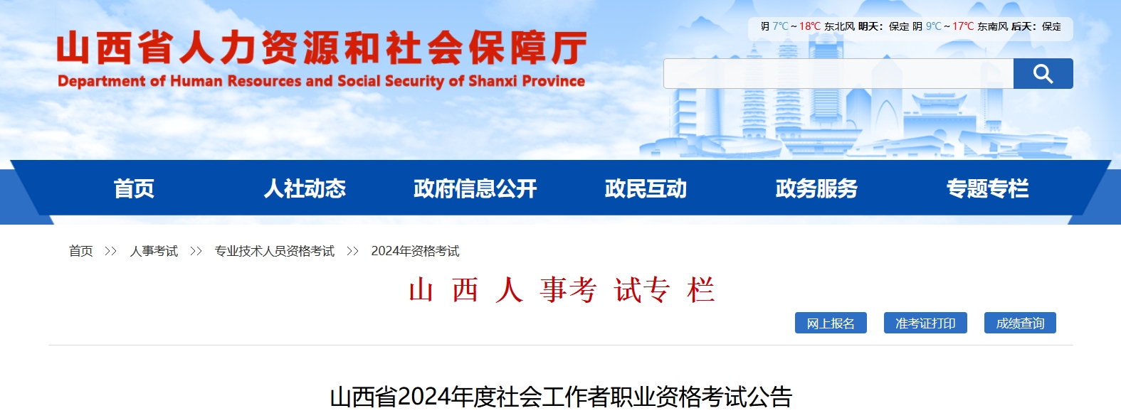 根据《山西省人事考试中心关于做好山西省2024年度社会工作者职业资格考试考务工作的通知》(晋人考函〔2024〕11号)安排,现将有关事项公告如下: