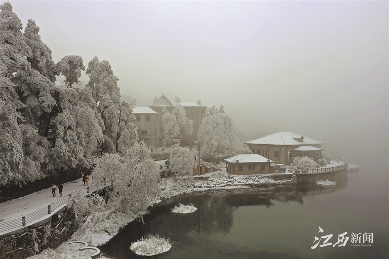 12月16日,庐山迎来降雪。白雪覆盖山峦,层林尽染。近几年,乘着冰雪旅游的东风,庐山充分利用降雪量大、存雪时间长的优势,推出冰雪旅游产品,充分展示庐山雾凇云海、玉树琼枝等场景,推进“冰雪世界”项目,打造南方景区冬季滑雪首选地。淡季不淡,庐山的冬季游越来越火热。