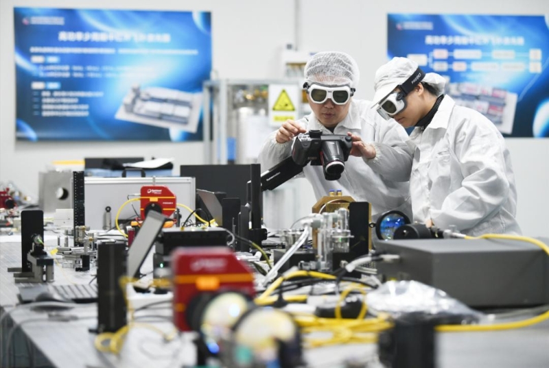 中科院西安光机所科研人员在做实验。新华社记者 张博文 摄