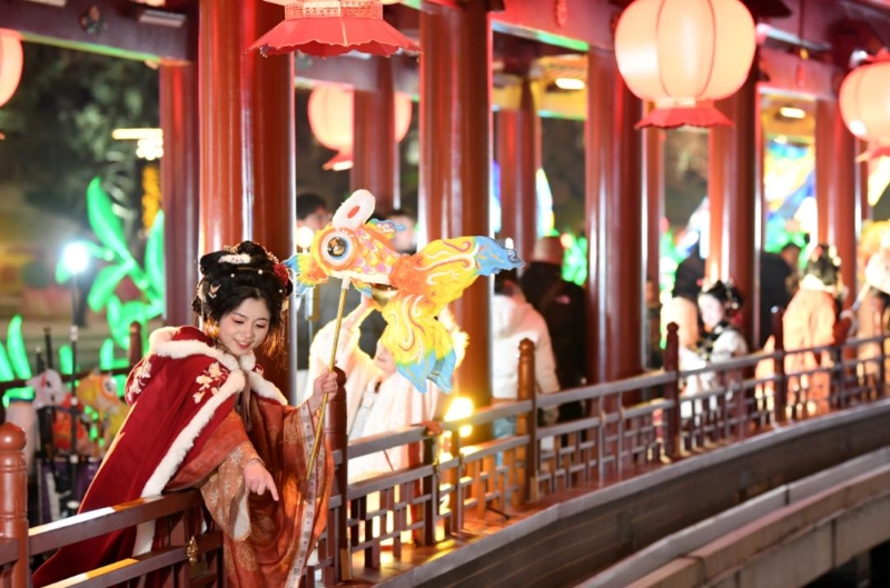 大唐不夜城“华灯太白”表演。新华社记者 邹竞一 摄