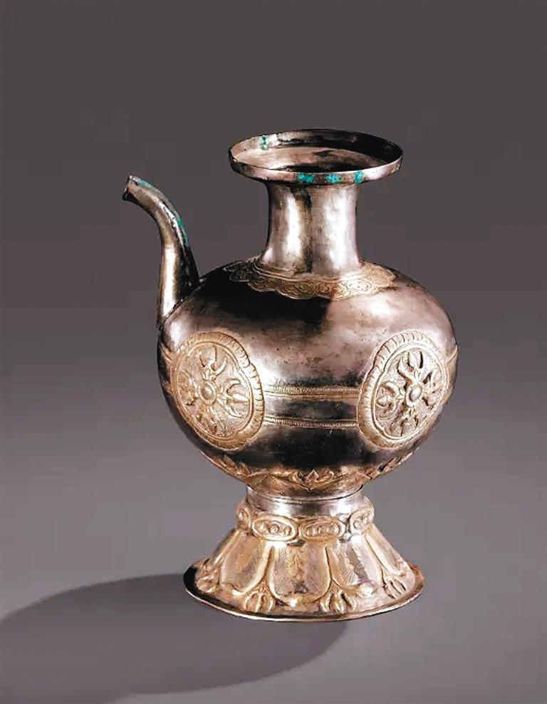 唐鎏金羯摩三钴杵纹银阏伽瓶 法门寺博物馆藏