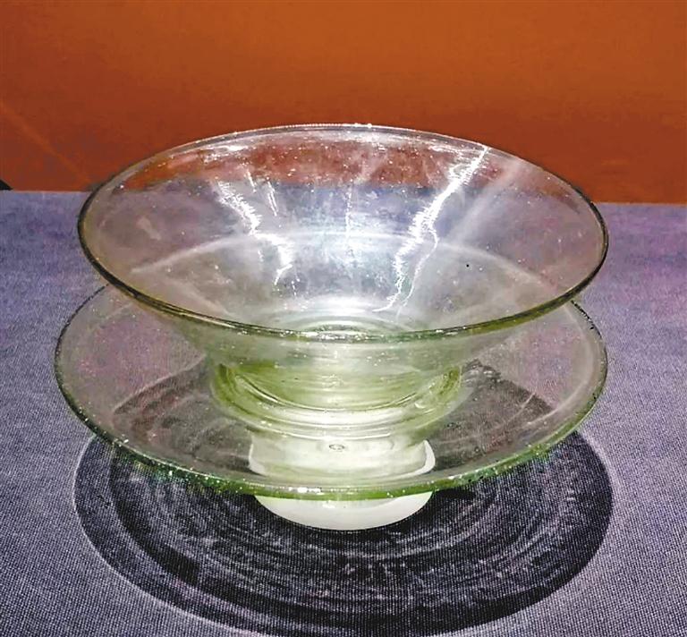 在法门寺出土的玻璃器中,有一套典型的中国器物造型茶碗茶托,《物账碑》上也明确记载为“琉璃茶碗茶托一副”。这套唐素面淡黄色琉璃茶碗、茶托,其中茶碗模吹成型,淡黄微绿色,透明、内外光洁。茶托也是模吹成型,淡黄微绿透明。2011年,对法门寺地宫出土的玻璃器首次进行无损检测的结果显示,法门寺出土的琉璃茶碗、茶托,与其他东罗马等地琉璃器成分完全相同,为典型的西方钠钙玻璃系统,意思是它们并非我国古代一直采用的铅钡系玻璃,而是西方钠钙玻璃制成。据推测可能是外国商人带来的舶来品,或是在中国本土使用西方原料生产出来的。