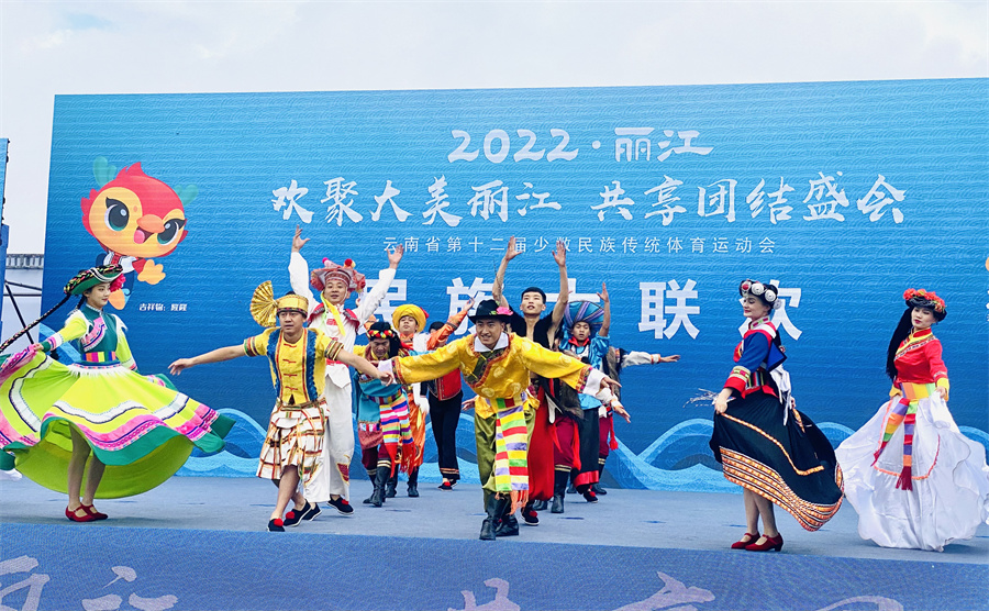 9月21日,云南省第十二届少数民族传统体育运动会民族大联欢在丽江东巴谷景区举行。