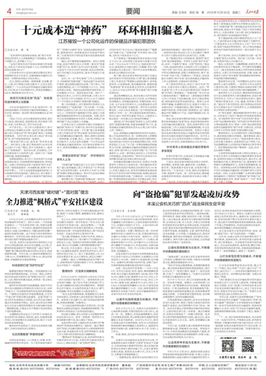 公安部指挥江苏等地公安机关破获特大保健品诈骗案