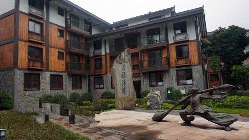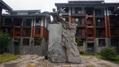 8月31日,在峨眉山黄湾门禁系统广场旁的黄湾小镇内看到,一幢幢具有川西民居特色的青灰色建筑喜气洋洋,高悬灯笼的街道串起一处处武林广场。设计师运用黑白分水理念,使山、水、地形、街道有机结合,溪流、河谷、树林贯穿其中,凸显“山居”特色。小镇上,峨眉武术的雕塑及建筑物上的峨眉武术文化元素也格外引人注目,展现了小镇独特的武术文化魅力。当你漫步于小镇,会有一种穿越时空回到武林时代的感觉,独具峨眉武术文化元素的建筑、栩栩如生的武术雕塑、高悬红灯笼的街道、宽广的武林广场。
