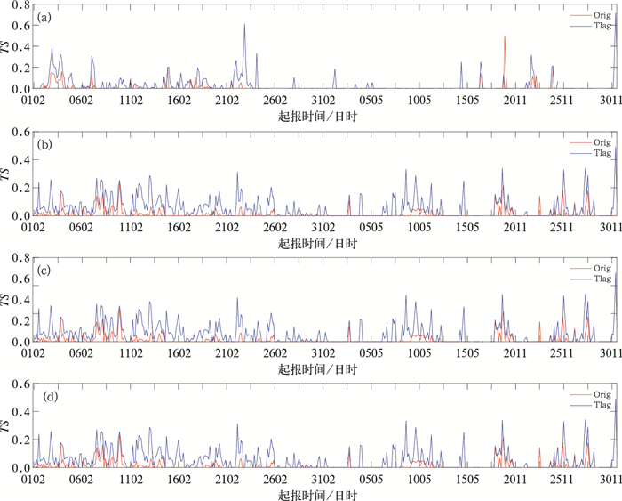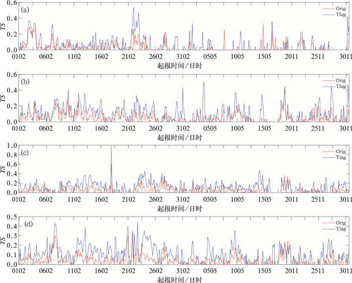 $TS = \frac{{NA}}{{NA + NB + NC}} $式中,NA为预报正确的站(次)数,NB为空报站(次)数,NC为漏报站(次)数。