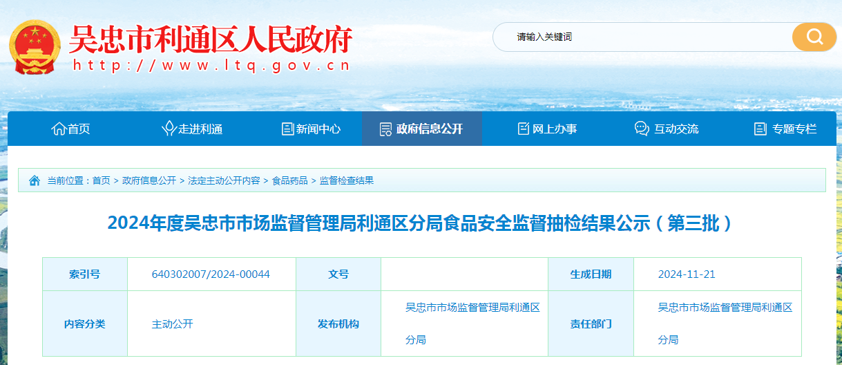 2024年度宁夏吴忠市市场监督管理局利通区分局食品安全监督抽检结果公示(第三批)
