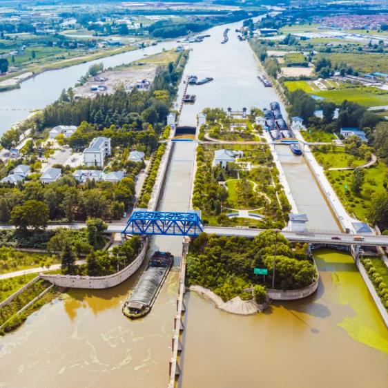 ▲ 航拍徐州大运河解台闸。摄影/王新伟