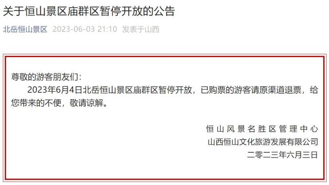 资料显示,北岳恒山位于山西省大同市浑源县城南4公里处,与东岳泰山、西岳华山、南岳衡山、中岳嵩山并称为中华五岳。自古即为中国北方著名的风景游览胜地和重要的道教发祥地之一,是中华锦绣山河的杰出代表,国家地理重要标志,承载着中化文明符号,孕育出深浓的地域文化和民俗,具有国山地位。恒山山脉,祖于阴山,发脉于管涔山,东西绵延五百里,锦绣一百零八峰,呈东北走向,叠嶂拔峙,横亘塞上。2009年,北岳恒山被成功列入“国家自然和文化双遗产名录”“世界自然和文化遗产预备名录”。