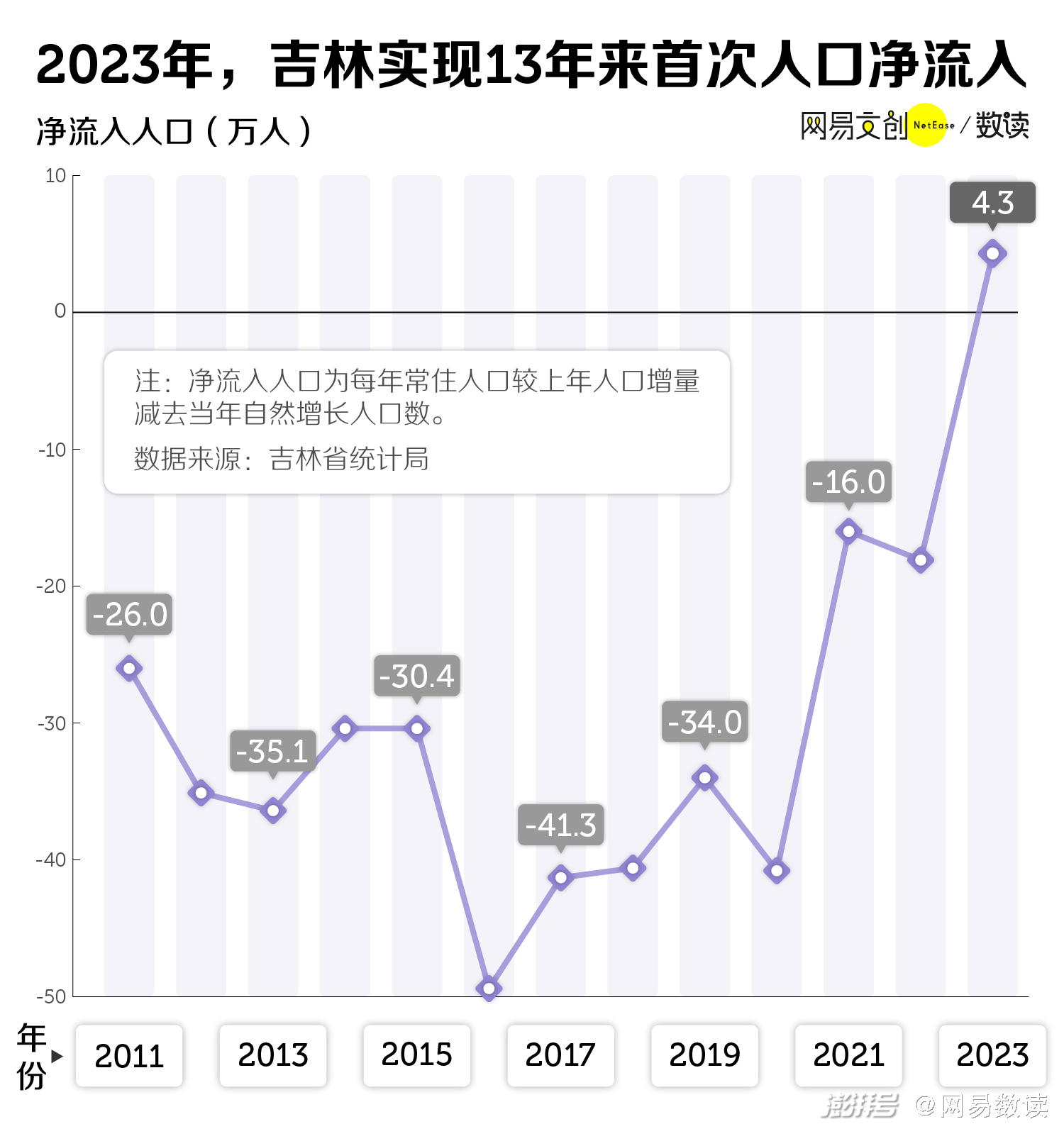 所以,从吉林省统计局发布的数据来看,2023 年吉林人口跨省净流入了 4.34 万人 [1]。