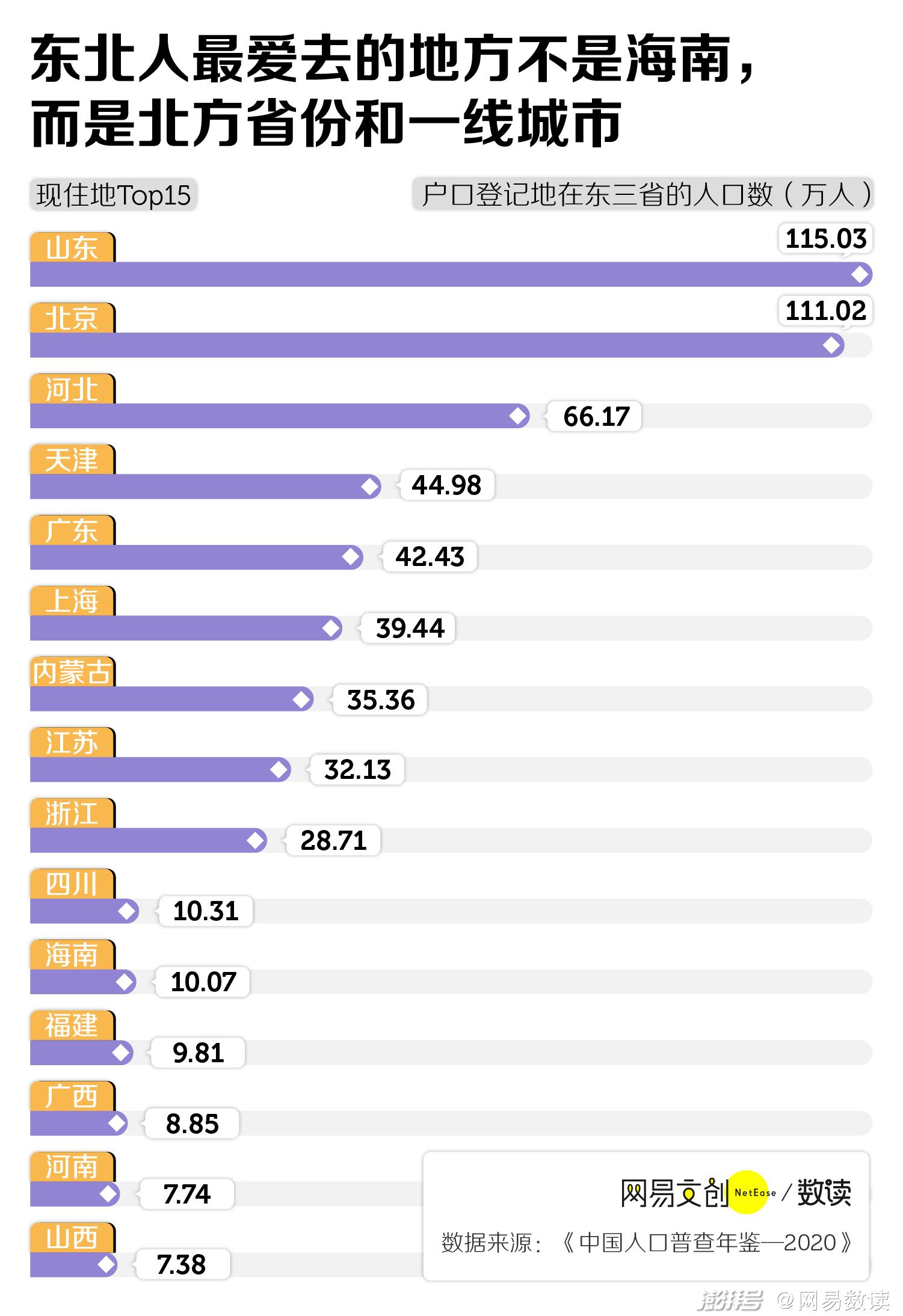 所以,相比之下,东三省的人口外流情况没有许多人想象得那么严重。人们觉得哪哪都是东北人,部分原因可能是东三省常被视作一个整体,而且东北人的口音和性格过于有存在感。