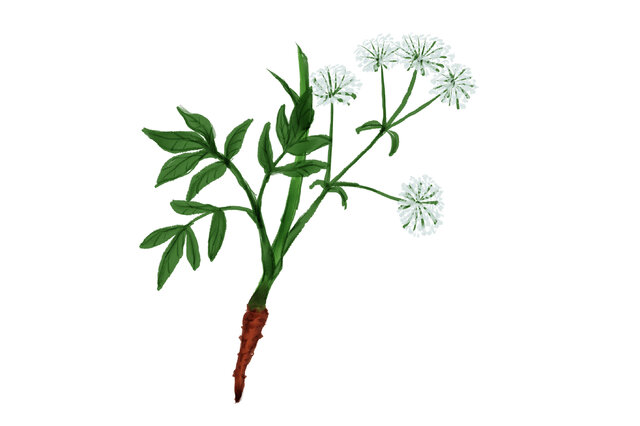 白芷,多年生高大草本,高1-2.5米,根圆柱形,茎基部径2-5厘米,基生叶一回羽状分裂,复伞形花序顶生或侧生,果实长圆形至卵圆形。白芷的根可以入药,有祛病除湿、排脓生肌、活血止痛等功能,主治风寒感冒、头痛、鼻炎、牙痛、赤白带下、痛疖肿毒等症,亦可作香料。一般生于林下、林缘、溪旁、灌丛和山谷草地。 【 详细>>】
