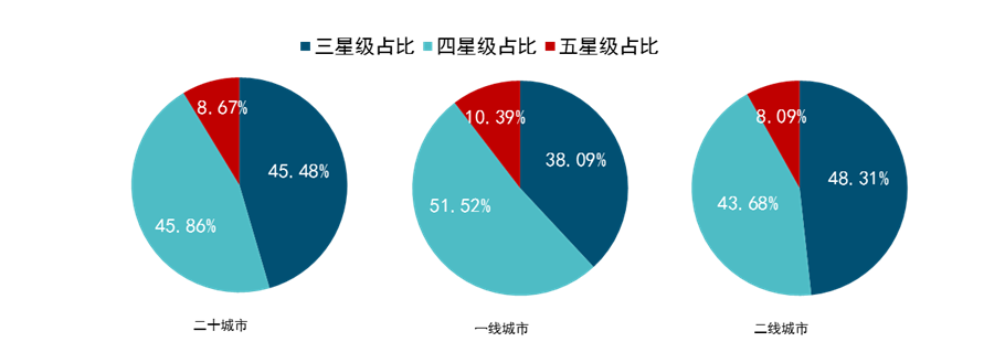 二十城样本各星级项目占比,四星级首次超越三星级,五星级项目占比保持稳定