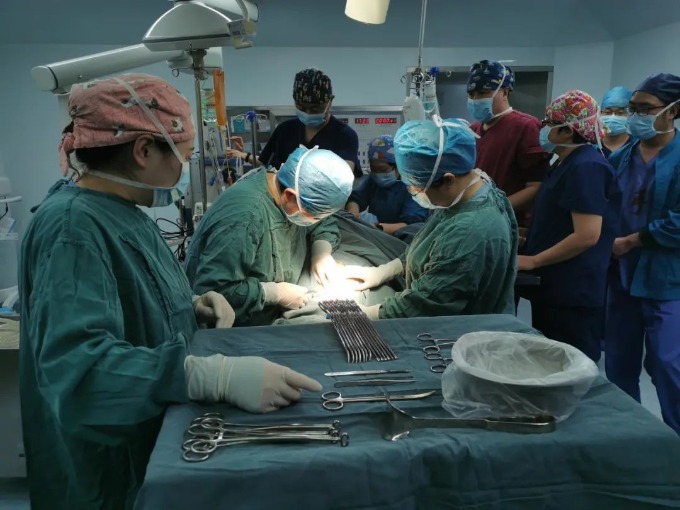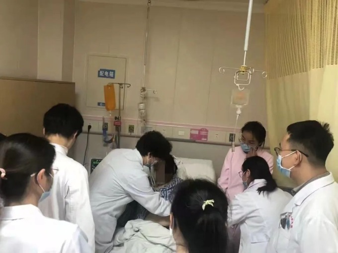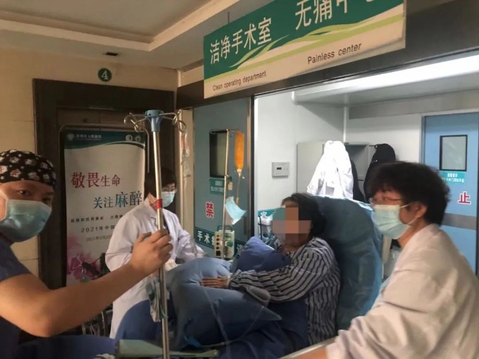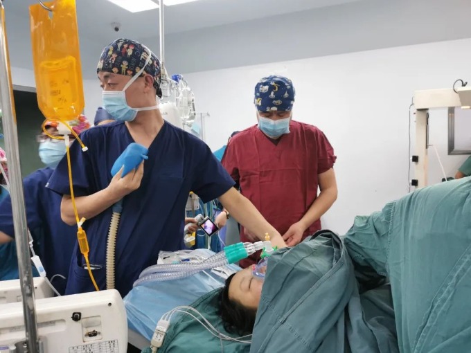 团队医护迅速将孕妇转运至手术室。虽然心衰得到纠正,但孕妇仍然不能平卧进行手术,手术只能采取有创血压监测下被迫半坐卧位进行。与此同时,由麻醉科主任陈治富、产科副主任王情、新生儿科程雨嘉等人组成的危重新生儿救治小组也已在旁做好了急救准备。