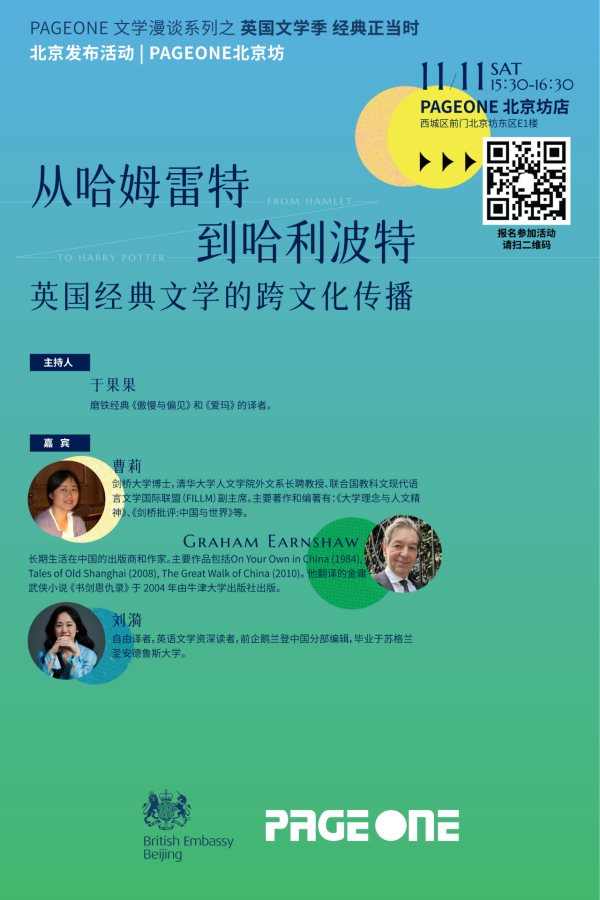 人类从会说话开始就成了讲故事的人:我们用故事了解世界,逃离世界,也用故事留下自己在世界上的印记。凭着对故事共同的热爱,英国驻华使馆和PAGEONE书店携手推出英国文学季,向中国读者介绍英国的新老作家。11月11日,我们将通过作家、译者和学者的不同视角,探讨和分享“从哈姆雷特到哈利波特,英国经典文学的跨文化传播”。