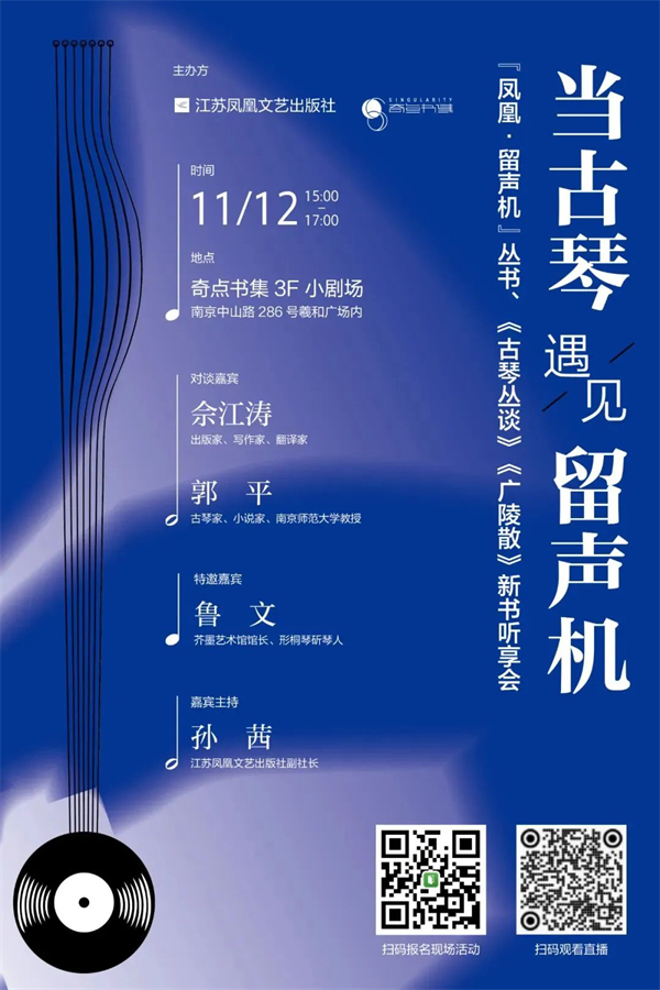 南京|当古琴遇见留声机——“凤凰·留声机”丛书、《古琴丛谈》《广陵散》新书听享会