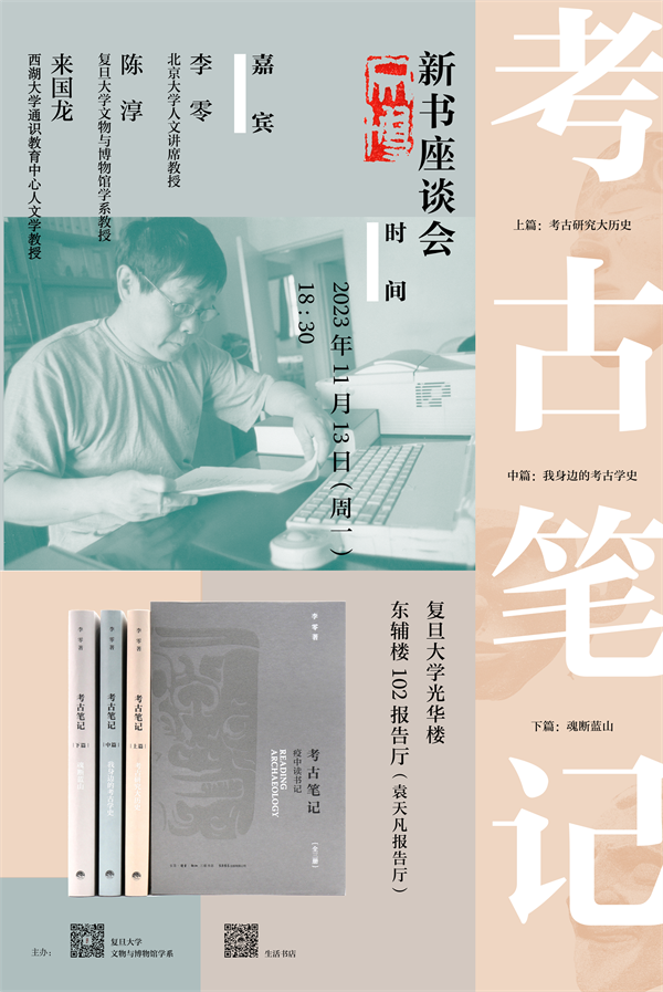 《考古笔记:疫中读书记》(全三册)是北京大学李零教授新近出版的著作,全书分“考古研究大历史”“我身边的考古学史”“魂断蓝山”三部分,阅读考古,思考考古,深入探讨了中外考古学家的研究对今天的意义。本次新书座谈首先由李零先生进行学术分享,并与复旦大学王辉教授,华东师范大毛尖教授、罗岗教授就考古对我们理解古今中西的重要启示、考古学在当代文化中的作用等话题进行对谈与交流。