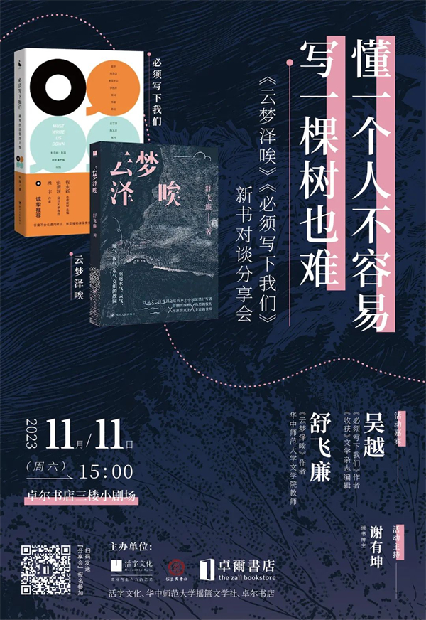 武汉|懂一个人不容易,写一棵树也难——《云梦泽唉》《必须写下我们》新书对谈分享会
