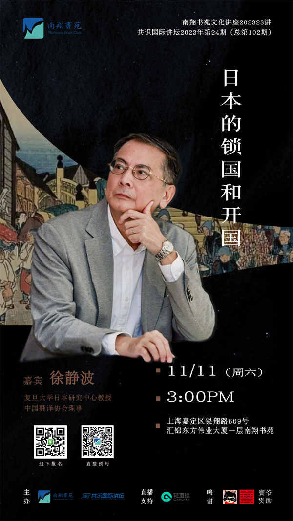 1603年,德川家康建立幕府统治,其子孙为了排除外国影响,也开始闭关锁国,一直到1853年的佩里黑船来袭,时间长达200多年。同样是闭关锁国,中日两国却在近代被迫开关之后,走上了两条完全不同的道路。那么日本为何要闭关锁国?又是如何一步一步走上闭关锁国的道路的呢?而被迫开国后,又是通过怎么样改革成为现代国家?11月11日,我们邀请到复旦大学日本研究中心教授、中国翻译协会理事徐静波老师做客南翔书苑,为大家带来“日本的锁国和开国”。
