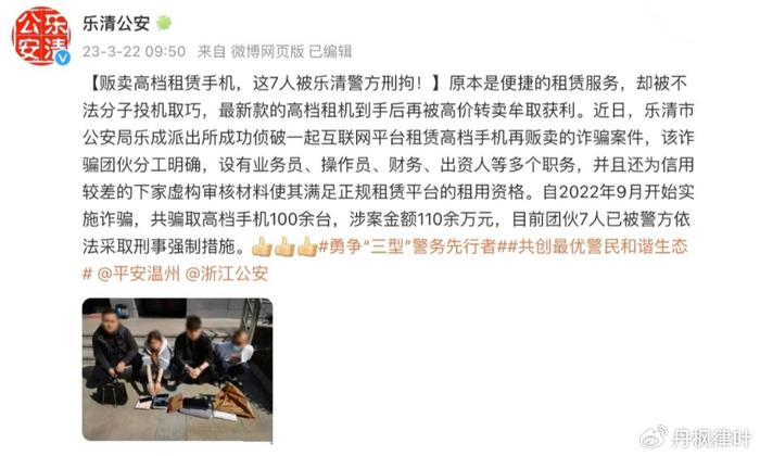 目前,各地公安已经发布了多起关于从租赁手机平台骗贷手机的违法犯罪活动。