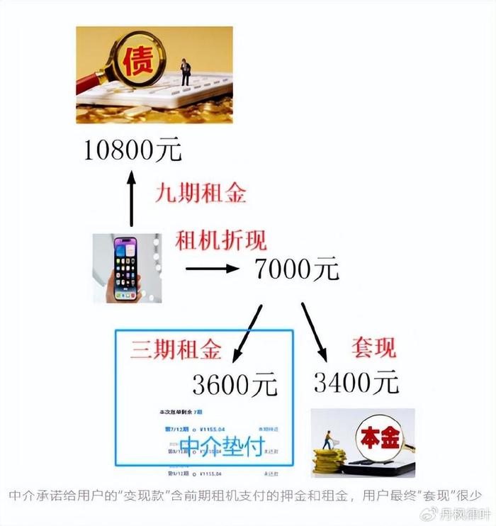 在租机平台发出手机后,中介取得租机,变卖租机后获得高额利润,并给用户少量套现款。