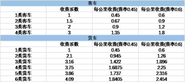 (4)计费公式:每一车型单公里收费 = 收费费率 x 收费系数