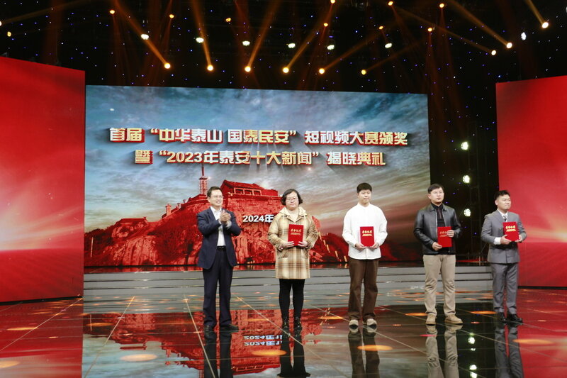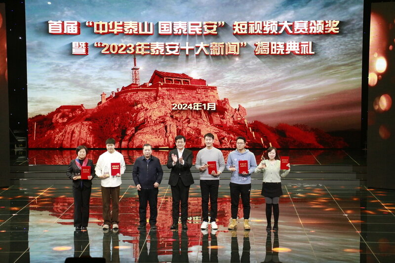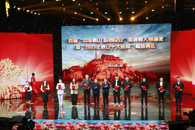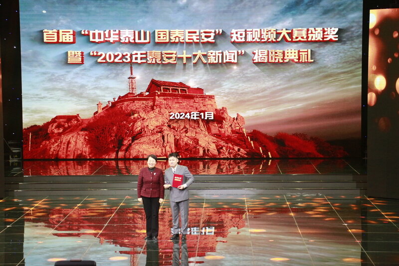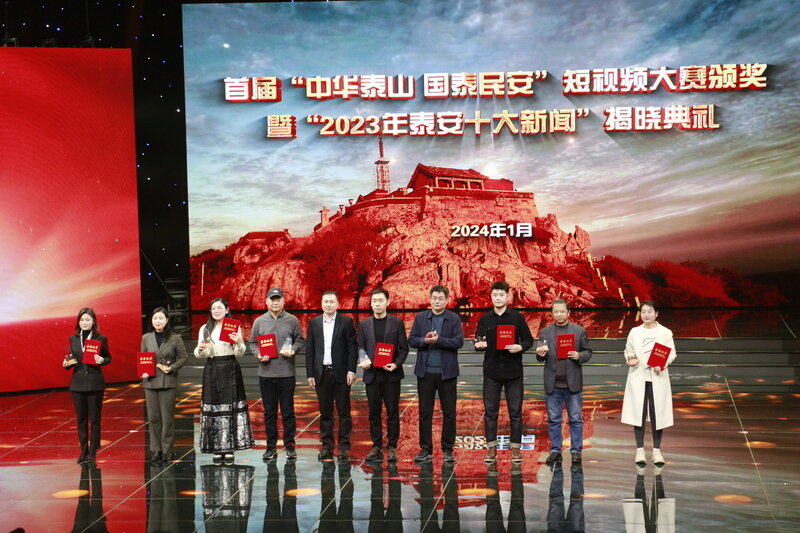 鲁网1月4日讯(记者 王丛聪) 首届“中华泰山 国泰民安”短视频大赛颁奖典礼1月3日下午在泰安市广播电视台演播大厅举行,2023年泰安十大新闻同时揭晓。