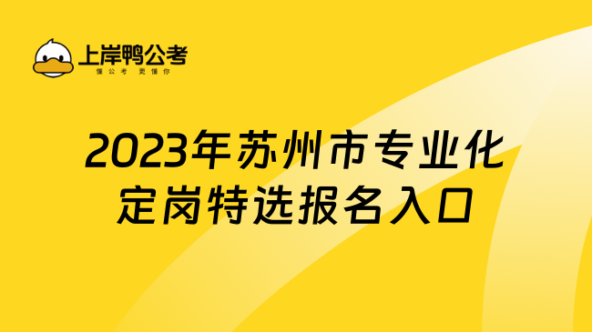 2023年苏州市专业化青年人才定岗特选报名入口(未开通) 2023年苏州市专业化青年人才定岗特选报名时间在2023年10月15日9:00至2023年11月15日16:00,大家要记得及时报名。为方便大家报名,公务员考试网小编为大家整理了2023年苏州市专业化青年人才定岗特选报名入口,具体如下。...