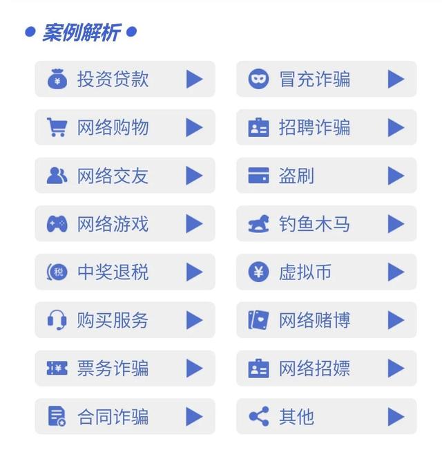 参照警方的诈骗手法分类标准,预警地图的第三个栏目为“案例解析”,例举15大类常见电信诈骗类型,通过深入剖析,让市民警惕身边诈骗,传递识骗知识,进一步提高青年、中年等易受骗群体使用粘性。
