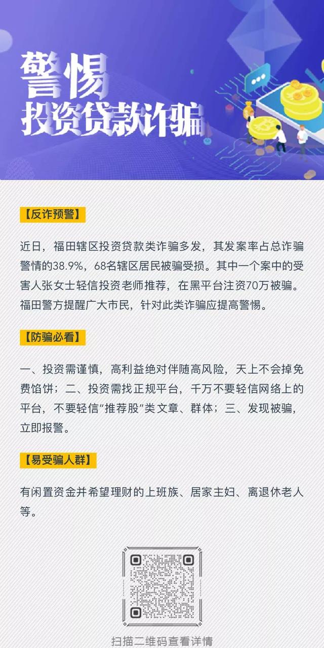 当前,电诈犯罪正在转向“小型化、定制化、精准化”,已成为群众反映最强烈的突出犯罪。通过梳理典型案例,被害人往往损失严重,有些人还投入了大量感情,最后落得人财两空。据了解,今年1至10月份,福田区非接触性诈骗约占总警情44.3%,已成为第一大类刑事治安警情。其中,多发诈骗类型主要为投资贷款、冒充、网络购物和招聘4类,占比共71.4%。