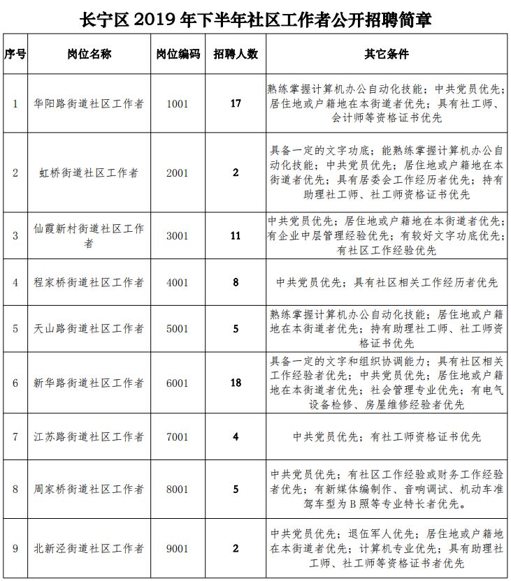 家门口的好工作来啦!长宁区2019年下半年社工招聘总共招收72人,符合条件的你不要错过哦~报名时间:2019年9月16日9:00至9月18日16:00。岗位要求详见→