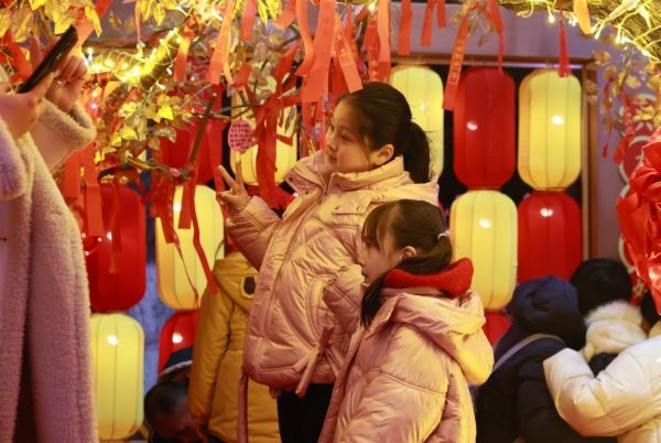 龙腾盛世。在温暖的温室大棚围炉煮茶听京韵大鼓,在喷泉广场观看威风锣鼓、彩狮贺春,在国风舞台赏川剧变脸,在非遗市集浏览艺术产品……除绚烂的灯组外,灯会还打造戴河烟火巷美食街区与非遗市集,全天布置近百场精彩演出,并推出极具地方特色的百余种非遗产品。飞车杂技、非遗演出、皮影戏、国潮舞蹈、街头杂耍、舞龙舞狮、猴戏、相声、京韵大鼓等串联起全景区每个角落,让市民游客观灯的同时享受丰富的文化大餐。