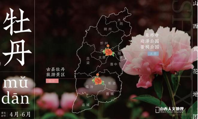 ��最佳赏花地点:太原(永祚寺、迎泽公园、晋祠公园);临汾(古县牡丹旅游景区)