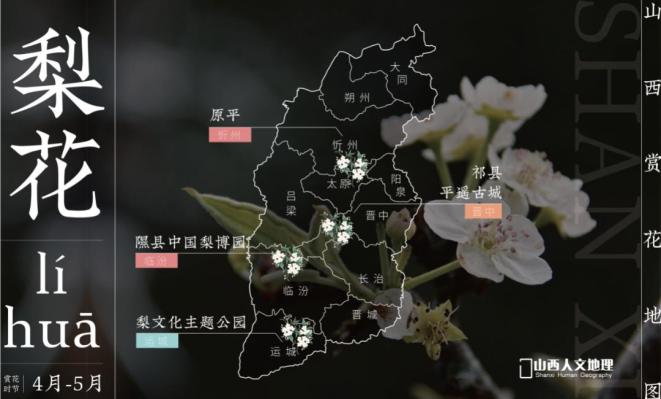 ��最佳赏花地点:忻州(原平);临汾(隰县中国梨博园);晋中(祁县、平遥古城);运城(梨文化主题公园)