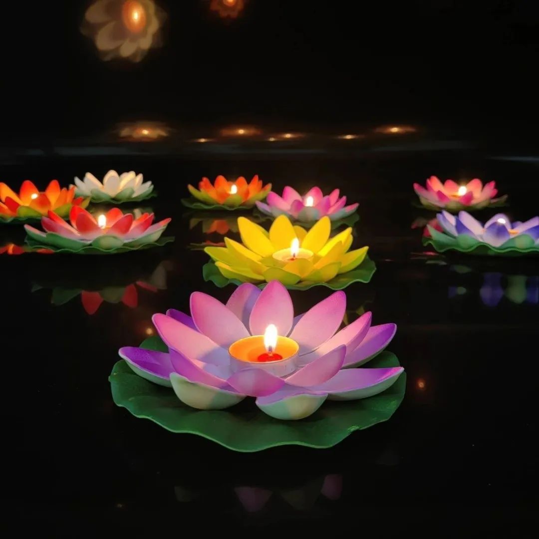 在江边,人们将制作精美的河灯放入水中,河灯随波漂流,寓意着祛除灾祸、祈求幸福,同时营造出浪漫温馨的氛围。