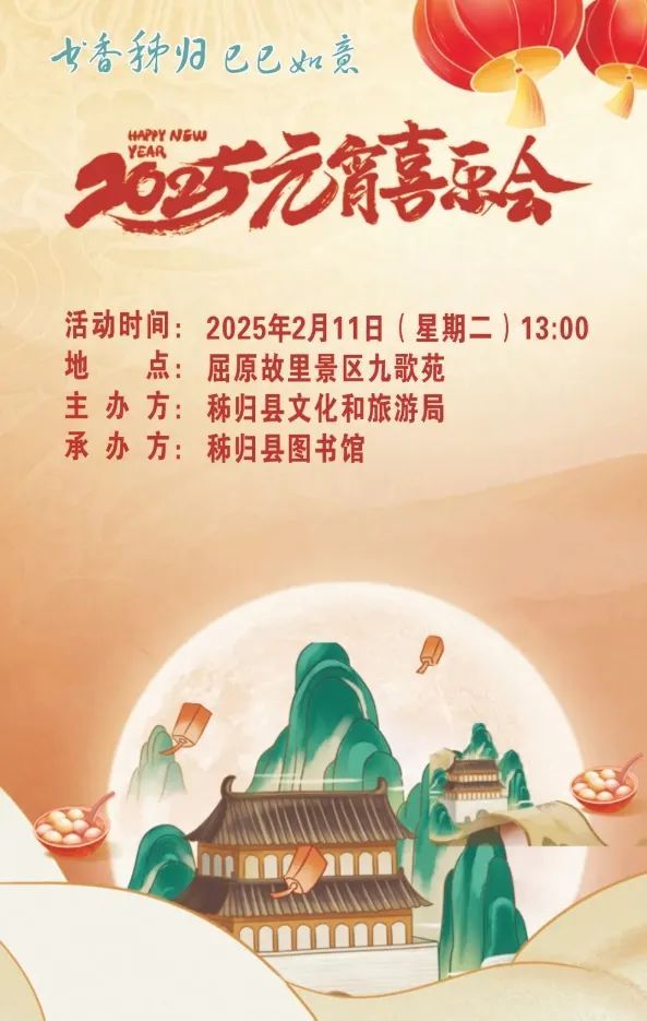 共制花灯,编织团圆记忆,花灯手作,点亮幸福新岁。元宵当天,将举办一场别开生面的手工花灯制作体验活动,邀您亲手编织一盏属于自己的花灯,感受那份流传千年的文化韵味与浪漫情怀。(注:报名电话:0717-2886886,报名截止时间:2月11日16:30,名额有限,先到先得!)
