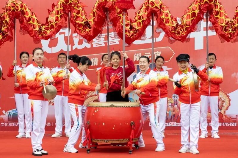 各镇(街道)龙灯队伍10支、2组民俗表演队伍(采莲船、民间花灯、蚌壳精、舞狮、大头娃娃表演)参与2025年元宵节民俗表演活动;12面大鼓同时表演。