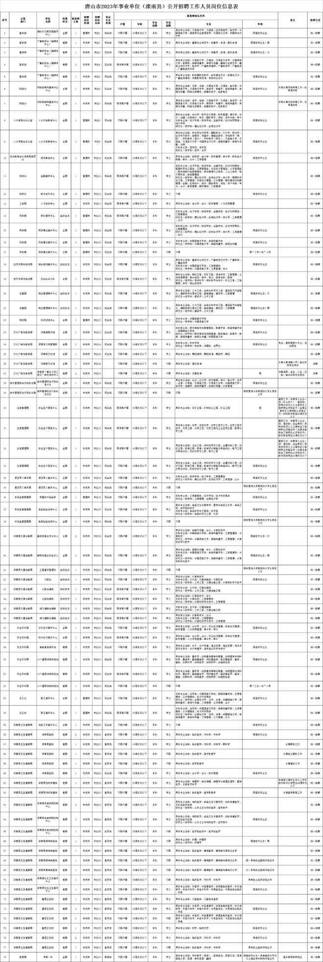 1.唐山市2023年事业单位(滦南县)公开招聘工作人员岗位信息表