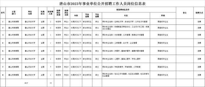 2、唐山开放大学面向社会公开选聘事业编制人员10名。