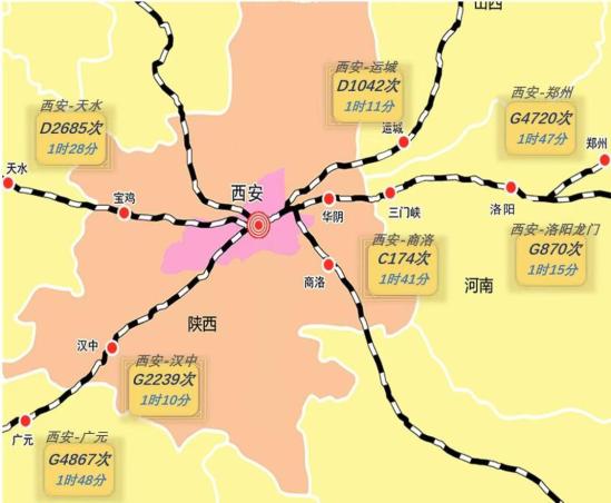 从西安出发坐高铁三小时内都能到哪儿?