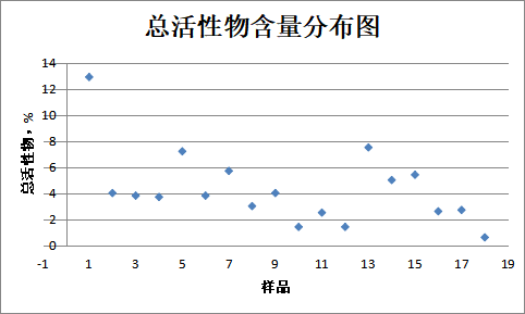 本次监督抽查20批次,其中2批次相关明示标准对活性物未做要求,其余18批次样品总活性物分布于0.6%~12.9%,符合明示标准的要求。