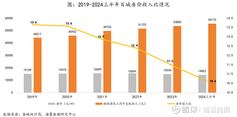 01. 2024上半年百城房价收入比跌破11,购房压力逐步缓解