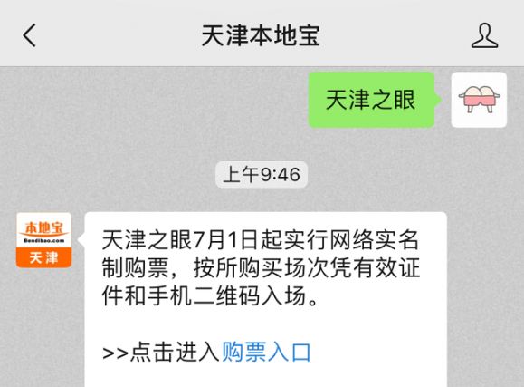 购票入口:天津之眼需要提前在微信实名制购票!您可以搜索关注公众号“天津本地宝”,对话框发送【天津之眼】,点击购票入口进行购票