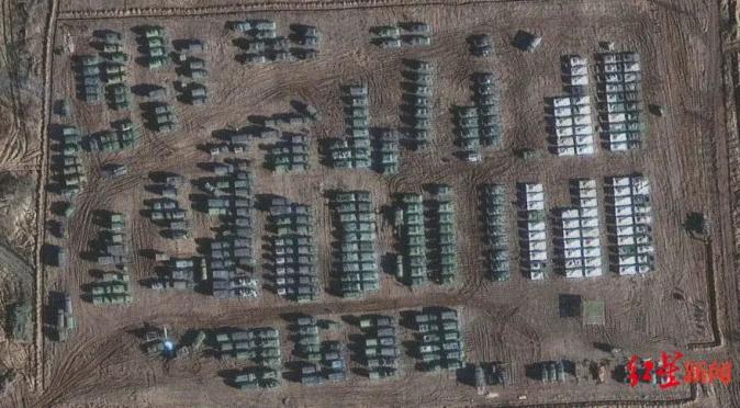 ▲Maxar公司于2021年11月1日收集的俄罗斯叶尔尼亚的高分辨率卫星图像显示,在该市北部边缘的一个训练区部署了大量地面部队