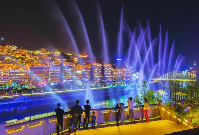 茅台镇夜景堪称一绝,有黔北夜明珠之称。水舞灯光秀、古建筑和灯光融为一体,山城夜景高低错落,观赏后会忍不住发出不愧是千年繁华古都的感叹。
