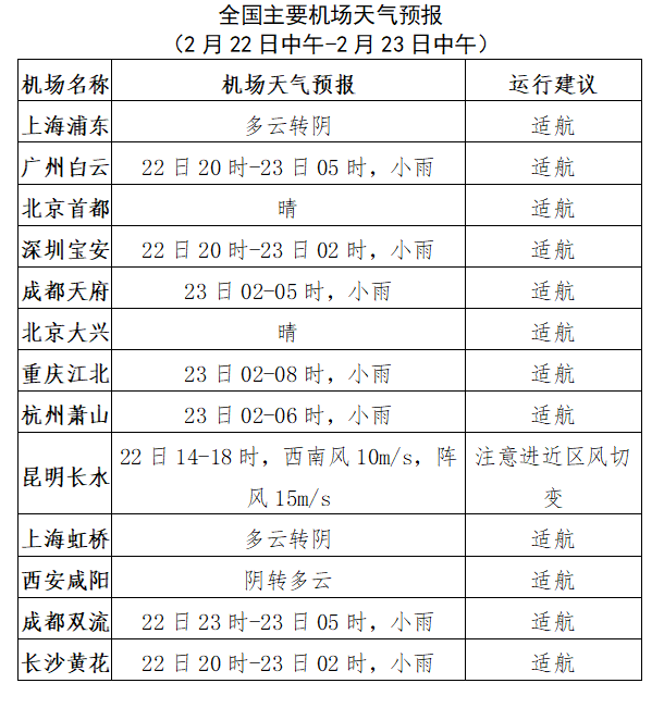 22日下午至晚间,乌鲁木齐机场有零星小雪;23日凌晨至早间,乌鲁木齐机场有500米的冻雾,哈尔滨、长春、沈阳等机场有霜。