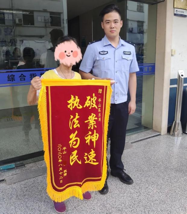 当从民警蔡浩东手中接过那重重的一沓钱后,李大妈紧锁了两个多月的眉头终于舒展开了,她为半山派出所送上“破案神速 执法为民”的锦旗一面,对警方及时破获案件、积极为受害者退赃表示衷心感谢。