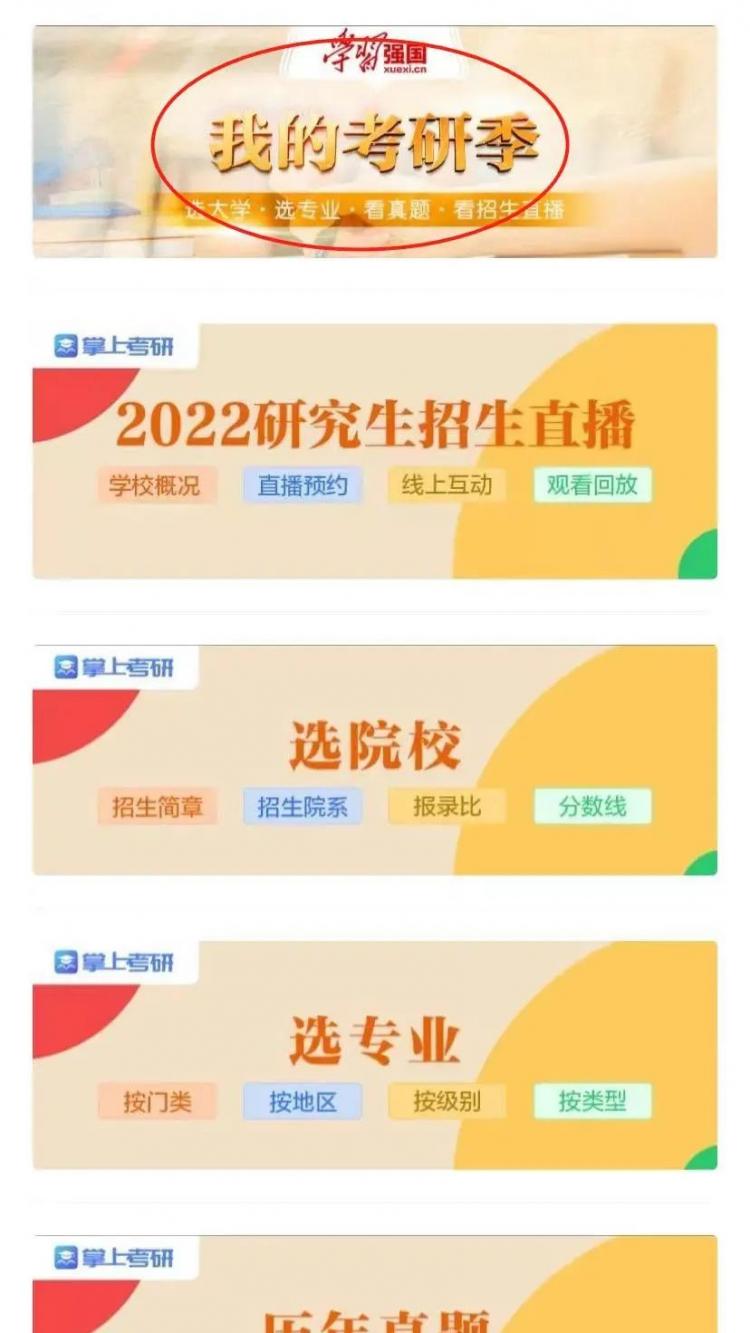 进入学习强国APP,找到”教育“专栏,点击我的考研季—选院校—搜索陕西科技大学,进入陕西科技大学首页。