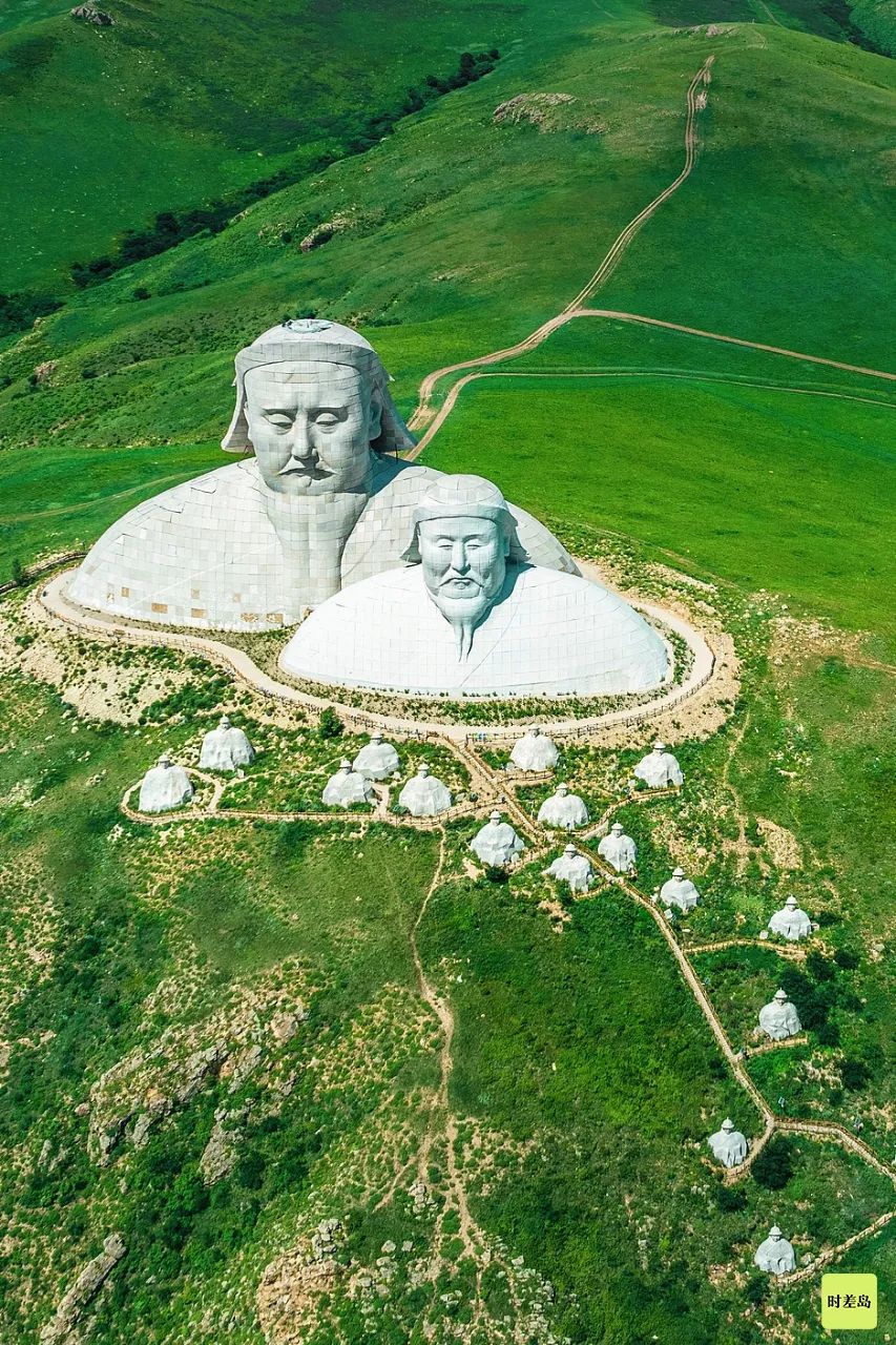 ▲霍林郭勒市可汗山,山顶是成吉思汗与忽必烈的巨型雕像。