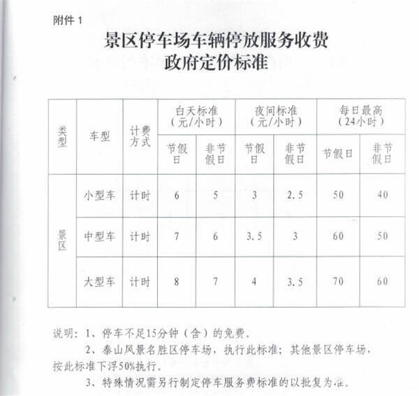 红门游客中心停车场、红门停车场、虎山生态停车场、天外村停车场、岱庙文化广场停车场(岱庙北门停车场)、岱庙南门停车场、桃花峪停车场等收费旅游停车场24小时营业。